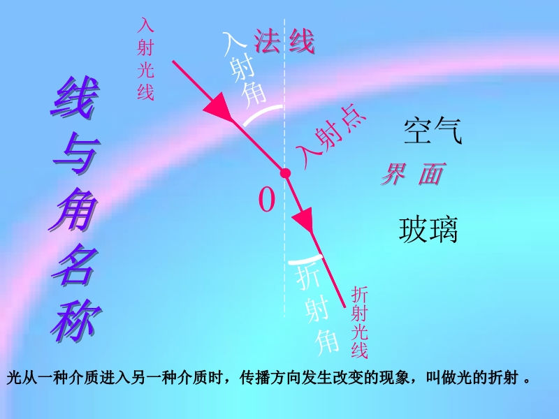 1、知道光的折射现象及折射光线和折射角;
