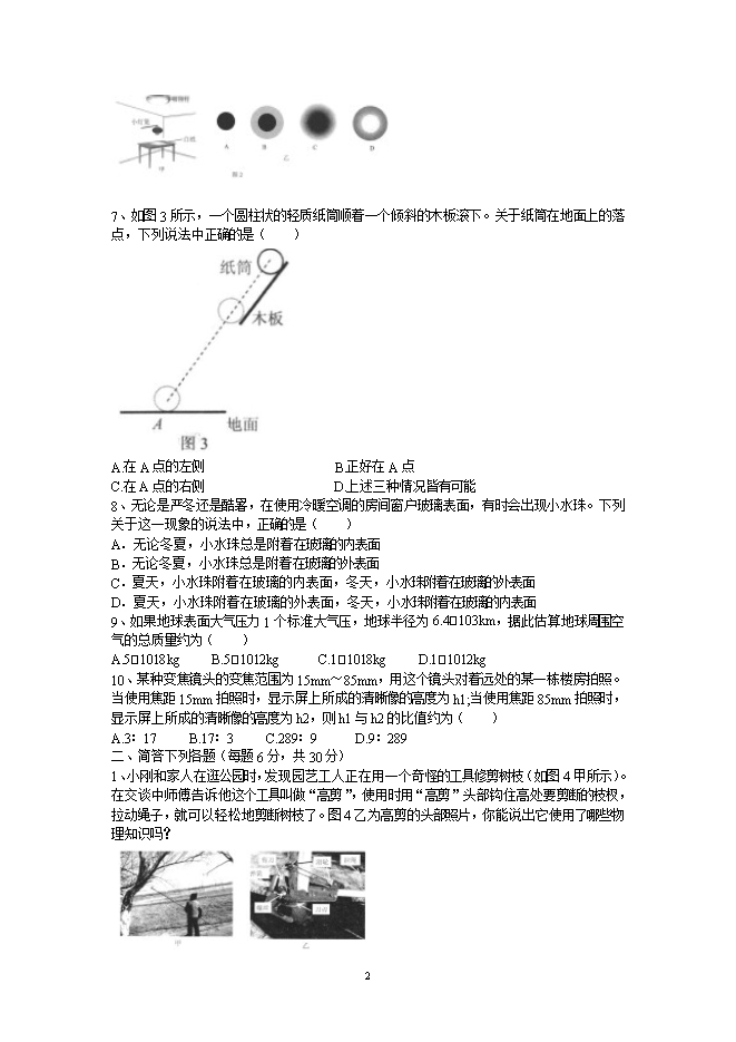 如图1甲、乙,展示了《乌鸦喝水》寓言中的场景。如图2甲、乙所示,是实验室内经常可以见到的场景。