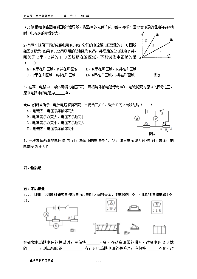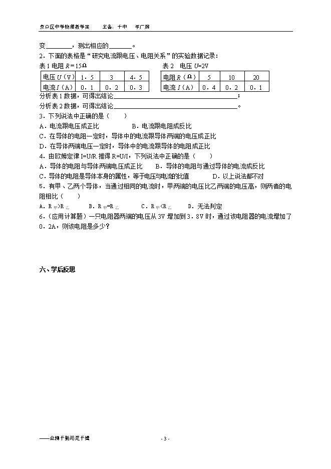 山东省安丘市东埠初级中学导学案:《第15章 电流和电路》 章末复习(人教版九年级物理)