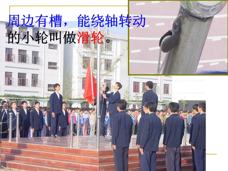 本节课主要让学生认识定滑轮、动滑轮,并能识别生产、生活中常见的滑轮,以及掌握定滑轮、定滑轮的结构、特点。