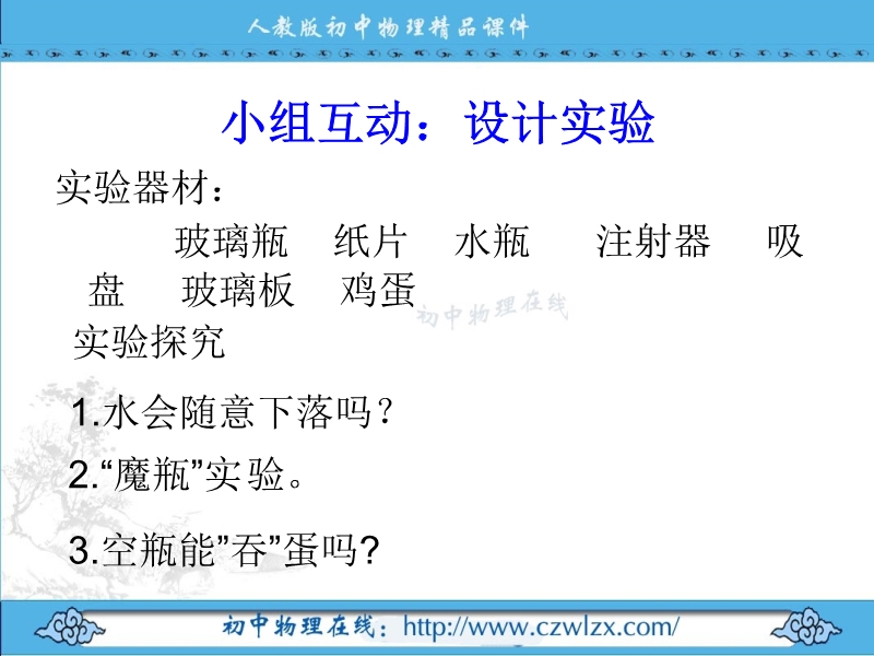 - 465人教版初中物理八下《9.3大气压强》创新课教学视频