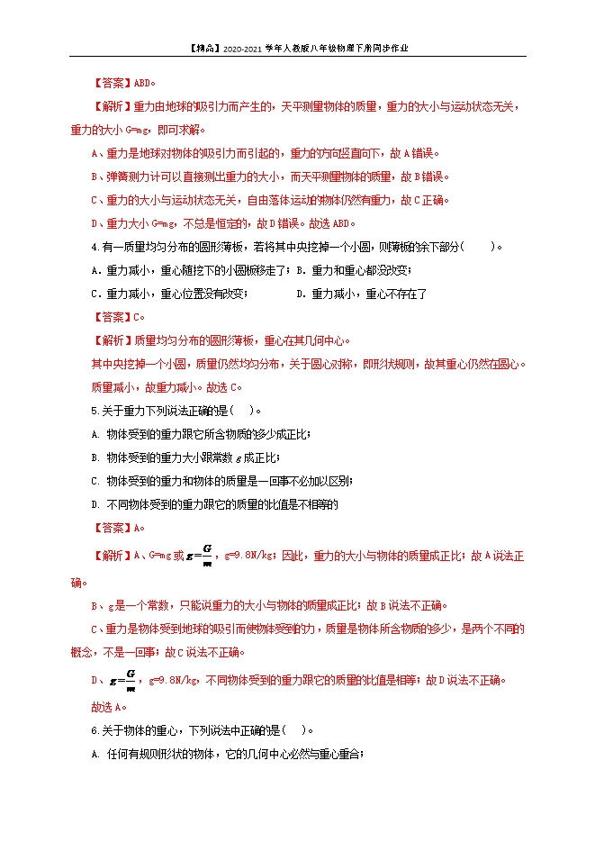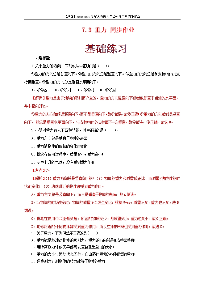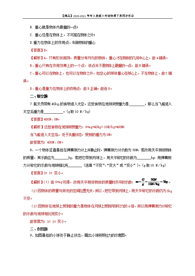 - 272专题08 力的平衡与受力分析--【备战2021】中考物理精选考点专项突破题集(安徽专用)