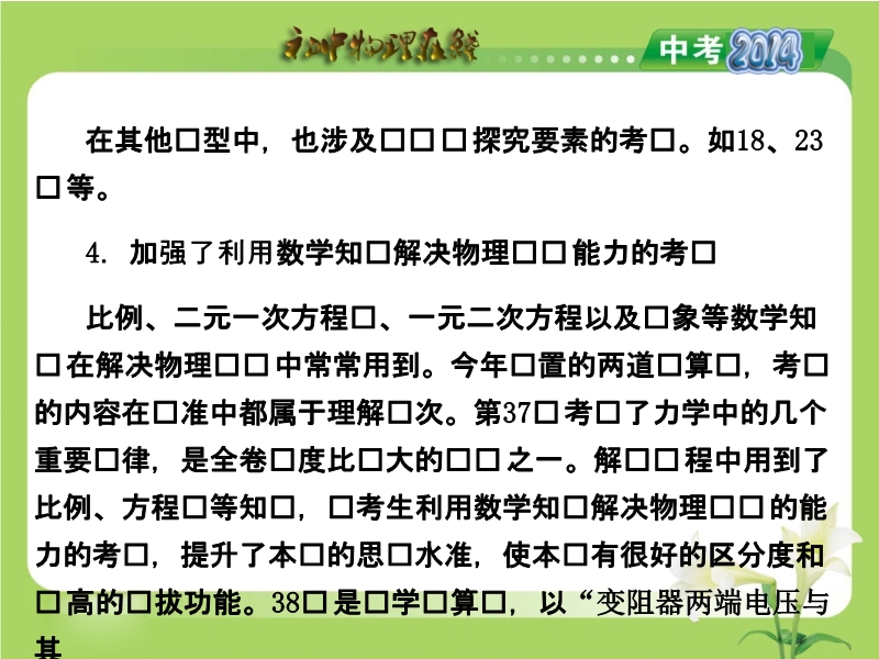 【内容简介】课件共23张幻灯片,课件在研究2010年中考试题的基础上,结合现行的考纲制作本课件,课件主要引导学生复习了光的折射、光的色散、看不见的光。课件精选了代表性的2010年典型的中考题,有详细的解析,能提高学生解决问题的能力。值得借鉴使用!