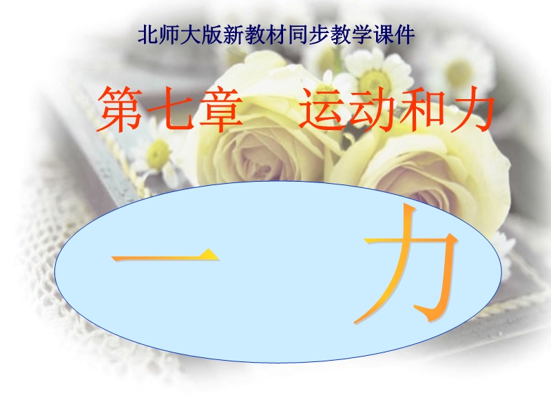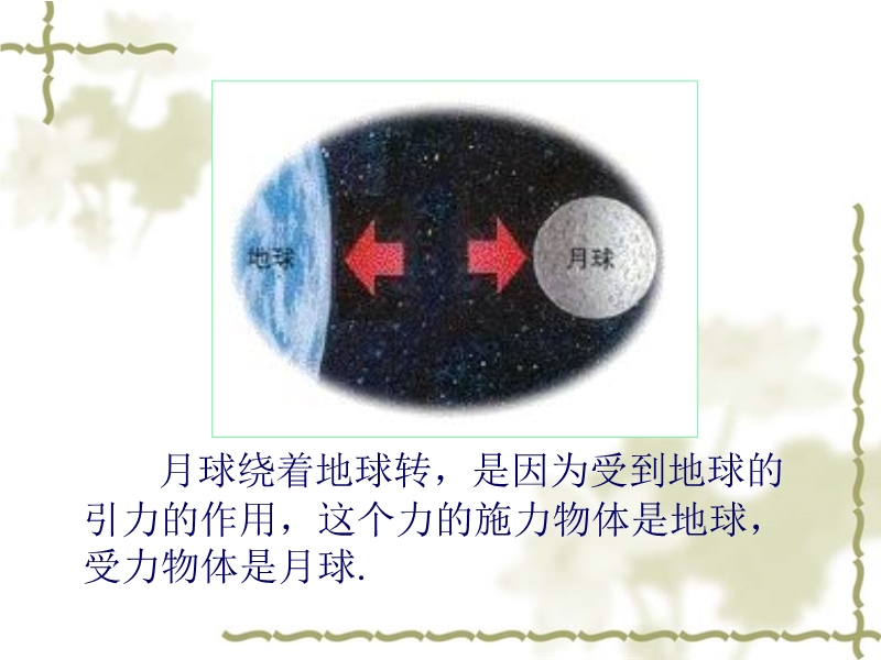 【内容简介】本课件以北师大版新教材第七章第一节为基础制作,共有24张幻灯片。主要引导学生认识了力的概念、施力物体和受力物体,探究了力的作用是相互的,引导学生学习了力的三要素,如何表示力,探究了力的作用效果,讨论了力的分类等。课件制作新颖、精彩,可供教学“力”时参考使用。