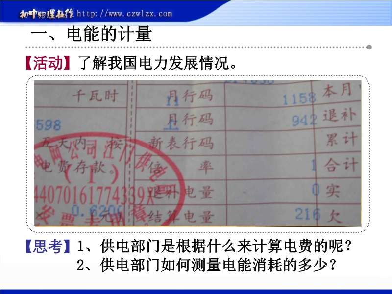 张幻灯片。课件首先展示了用铅笔芯改变小灯泡亮度的一个小实验,然后用