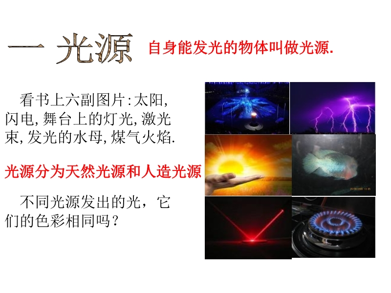 【内容简介】本课件以苏科版新教材第三章第一节为基础制作,共有16张幻灯片,1个视频flash。课件通过2012年伦敦奥运会的闭幕式的视频引入课题,引导学生认识了光源,对光源进行了分类,展示了光的色散实验,引导学生认识了白光的组成,引导学生设计简单的小实验探究了物体的颜色问题,认识了光的三原色,课件还展示了光具有能量等。