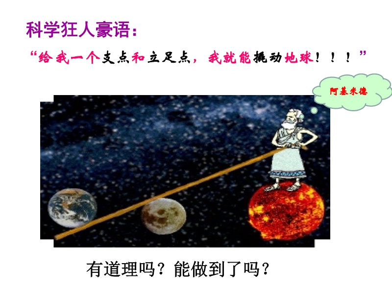 【内容简介】沪科版《10.1科学探究:杠杆的平衡条件》(第1课时)ppt课件,本课件以沪科版新教材第十章第一节为基础制作,共有30张幻灯片。课件从日常生活入手引导学生认识了什么是杠杆,并讨论理解了杠杆的五要素,引导学生练习了如何画力臂,并让学生通过实验探究了杠杆的平衡条件等。课件制作生动、形象,精选了典型的习题,可供教学“杠杆”时参考使用。
