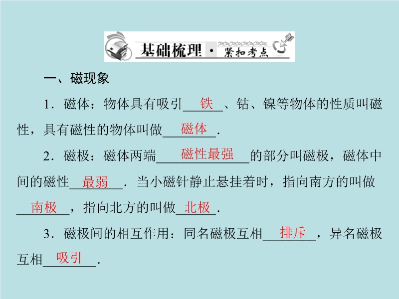 中考复习《第五单元 电与磁 信息的传递》第1课时ppt课件