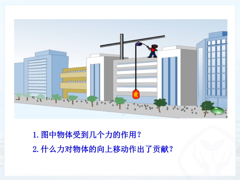 荔波县第二中学《11.1_功》ppt课件 ,本课件以人教版新教材第十一章第一节为基础制作,共有20张幻灯片。本课件结合生活中具体的实例认识了做功的概念,引导学生总结了做功的两个必要因素,学习了功的计算公式、功的单位,通过具体的例题引导学生学会如何利用功的计算公式解决实际问题等。