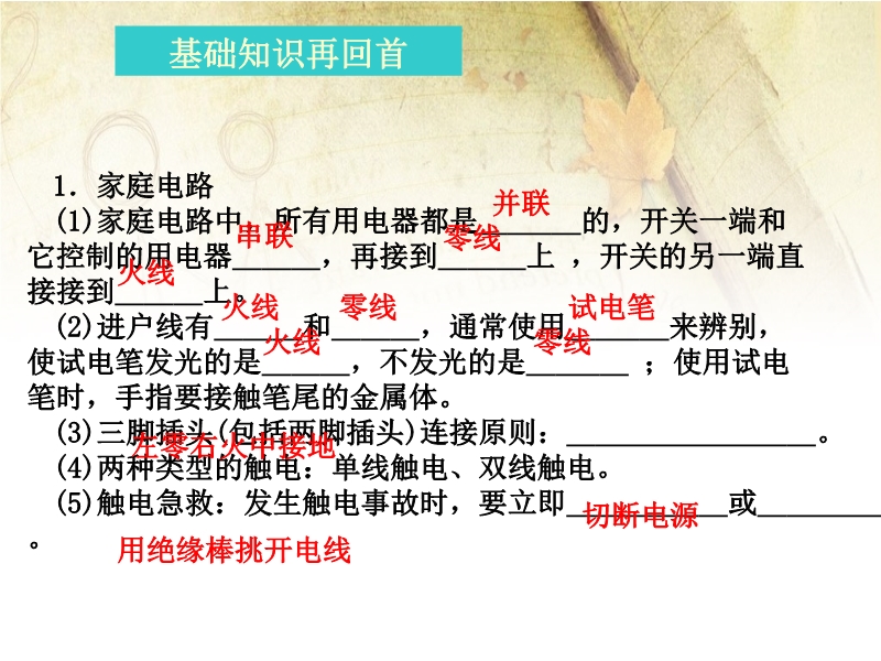 2015年人教版单元复习课件:《第十九章 生活用电》ppt课件(免费)