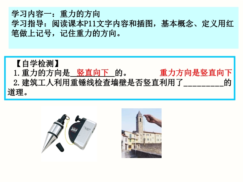 【内容简介】人教版:《7.3 重力》PPT+视频课件,,课件共有23张幻灯片和1个视频。课件采用先学后教的模式,引导学生认识了重力和重力的产生原因,总结了重力的大小与质量的关系,让学生讨论了重力的方向及在生活中的应用,让学生了解了物体的重心,课件最后通过视频展示了“失重”展示了没有重力会怎样。