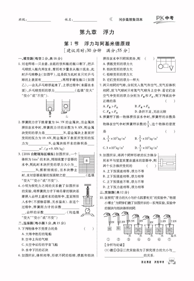 - 266运动和力--2025年中考物理复习教材知识点及探究实验考点梳理