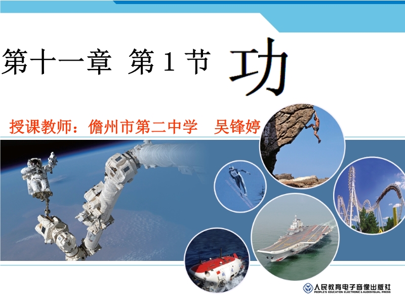 【内容简介】人教版:《11.1功》PPT+flash课件,共有35张幻灯片。课件引导学生通过三幅图片分析了力对物体的向上移动作出了贡献,在此基础上引导学生认识什么是功,讨论了功的含义及做功的必要条件,展示了不做功的几种情况,总结了功的计算公式和单位等。课件精选了典型的例题和习题,能引导学生更深入的认识功的概念和意义。
