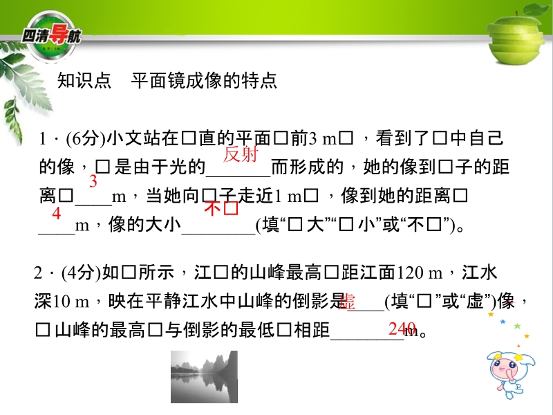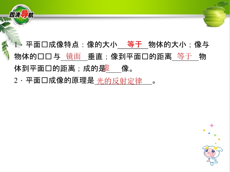 四清导航课件:人教版《4.3平面镜成像》知识点训练ppt课件(免费)