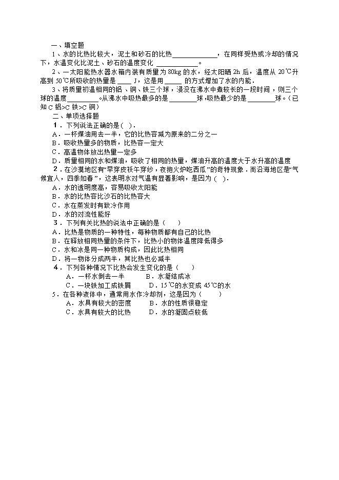 (2)通过运用水的比热容较大这一特性理解一些简单现象,认识物理与生活的紧密联系。