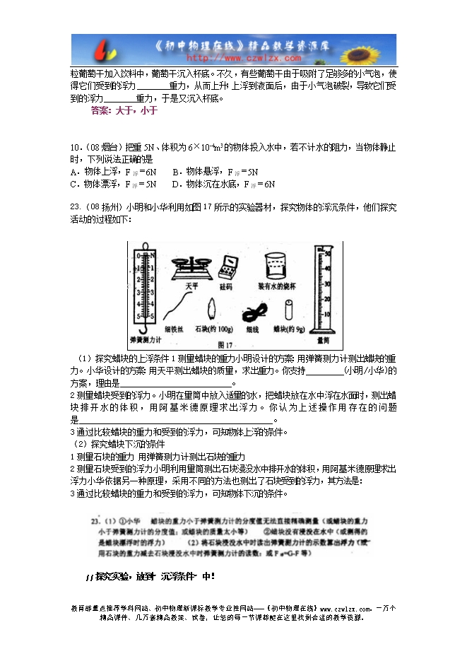 - 上一份试卷:2008年中考物理试题分类汇编—物体的浮沉条件