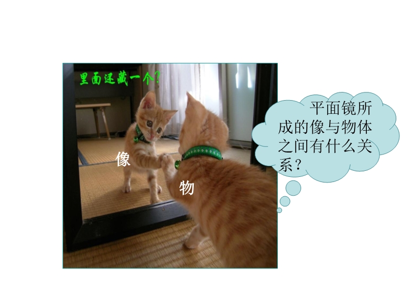 教师:物理学中把刘姥姥照的那面表面是平的镜子称为平面镜;镜子外面的她称为“物”;镜子里面的她称为“像”。今天我们共同学习“平面镜成像”。由此引入课题。
