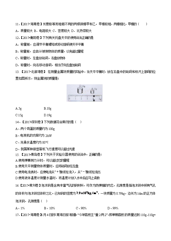 2018年中考物理必备之微测试:专题44 重力(word原卷版和解析版)