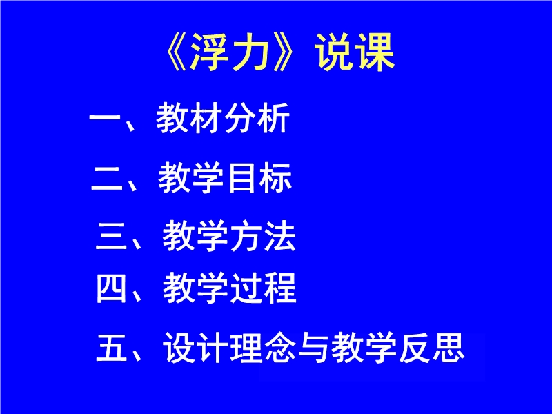 【内容简介】人教版说课:《浮力》PPT说课+视频,课件是一个说课课件,重点突出实验创新方面的设计,提供了创新视频四份。